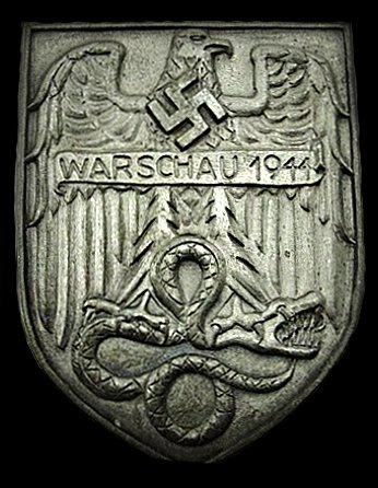 10.XII.44 Władze niemieckie utworzyły odznaczenie dla Niemców mordujących Polaków w Powstaniu Warszawskim : "Warschauerschild" (Tarcza Warszawska)