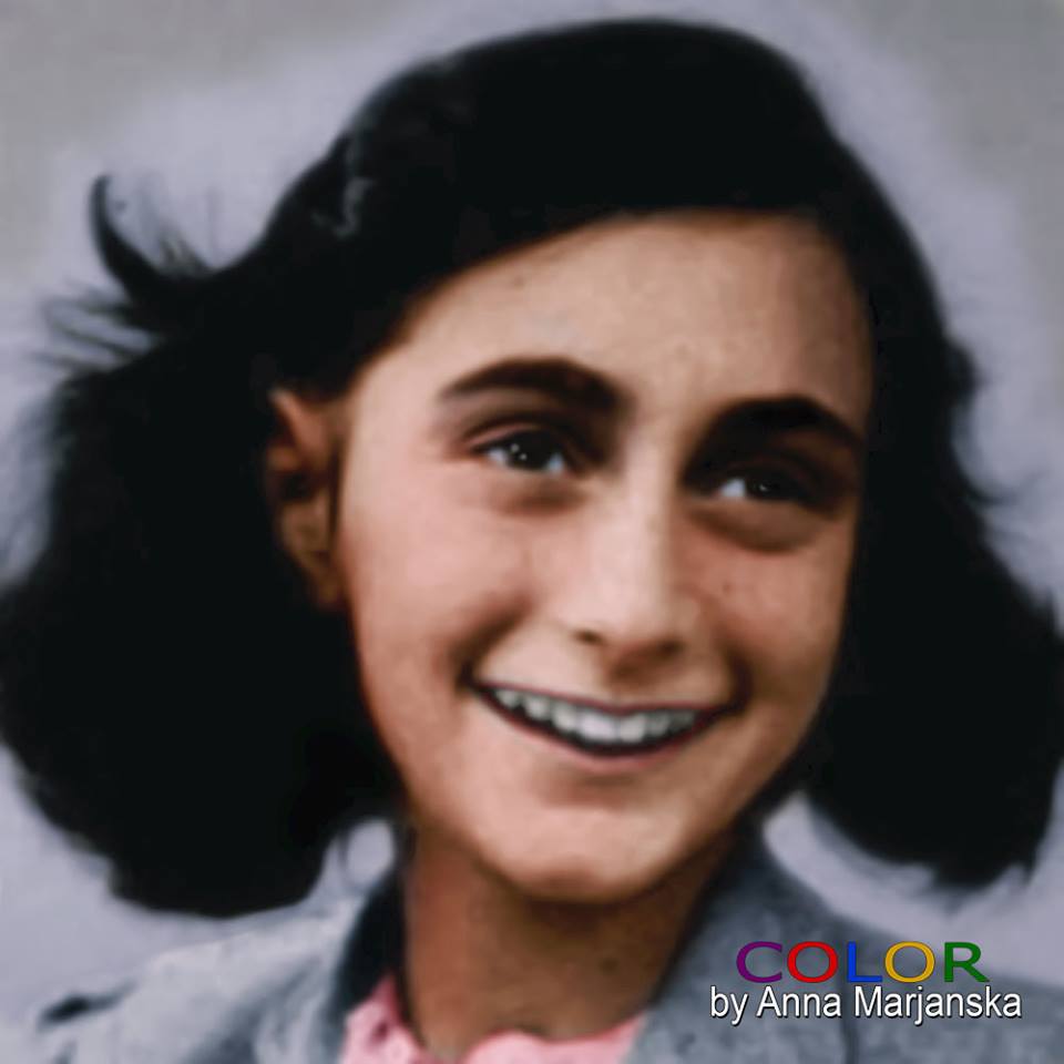 Anne Frank ur. 12-VI-1929 r. żydowska dziewczyna, zmarła w NIEMIECKIM OBOZIE ŚMIERCI BERGEN-BELSEN po dwuletnim ukrywaniu się w Amsterdamie.