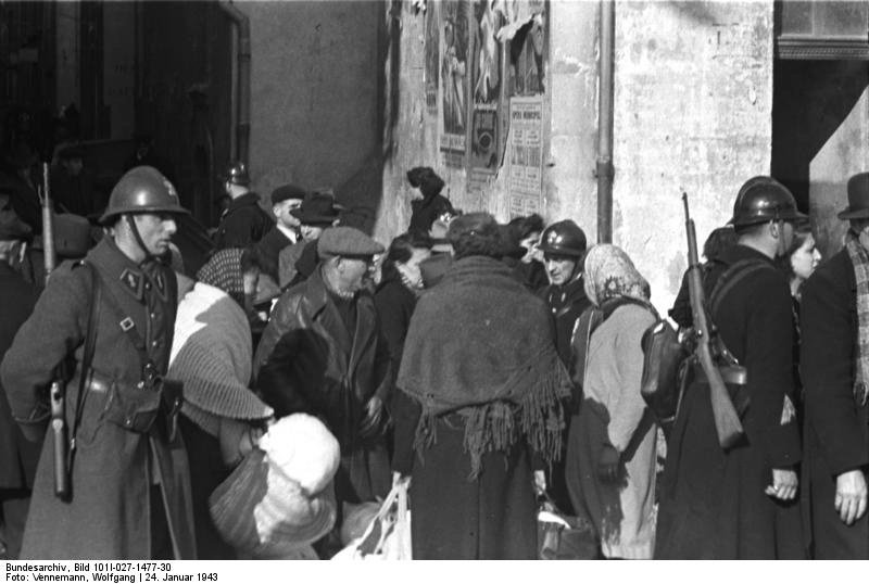 Deportacja Żydów z Marsylii 24.1.1943. Na zdjęciach francuscy policjanci podczas aresztowania Żydów i konwojowania ich do pociągów ewakuacyjnych.