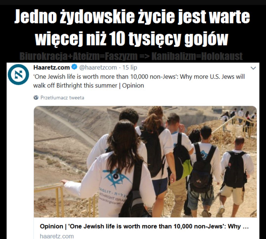 Jedno żydowskie życie jest warte więcej niż 10 tysięcy gojów.