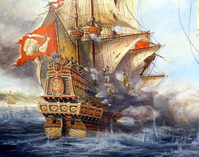 Zdjęcie obrazu autorstwa Anny i Andrzeja Orlińskich.Świetnie widoczna bandera Polskiej Marynarki Wojennej z XVII wieku. Zdjęcie obrazu autorstwa Anny i Andrzeja Orlińskich.