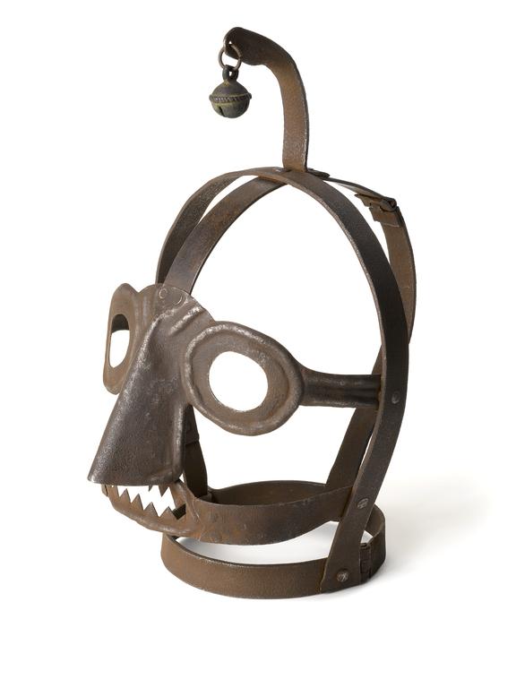 The device was typically an iron cage for the head with a metal bit or bridle that was inserted into the mouth. The bit sometimes had spikes or a tongue depressor to prevent the wearer from speaking.